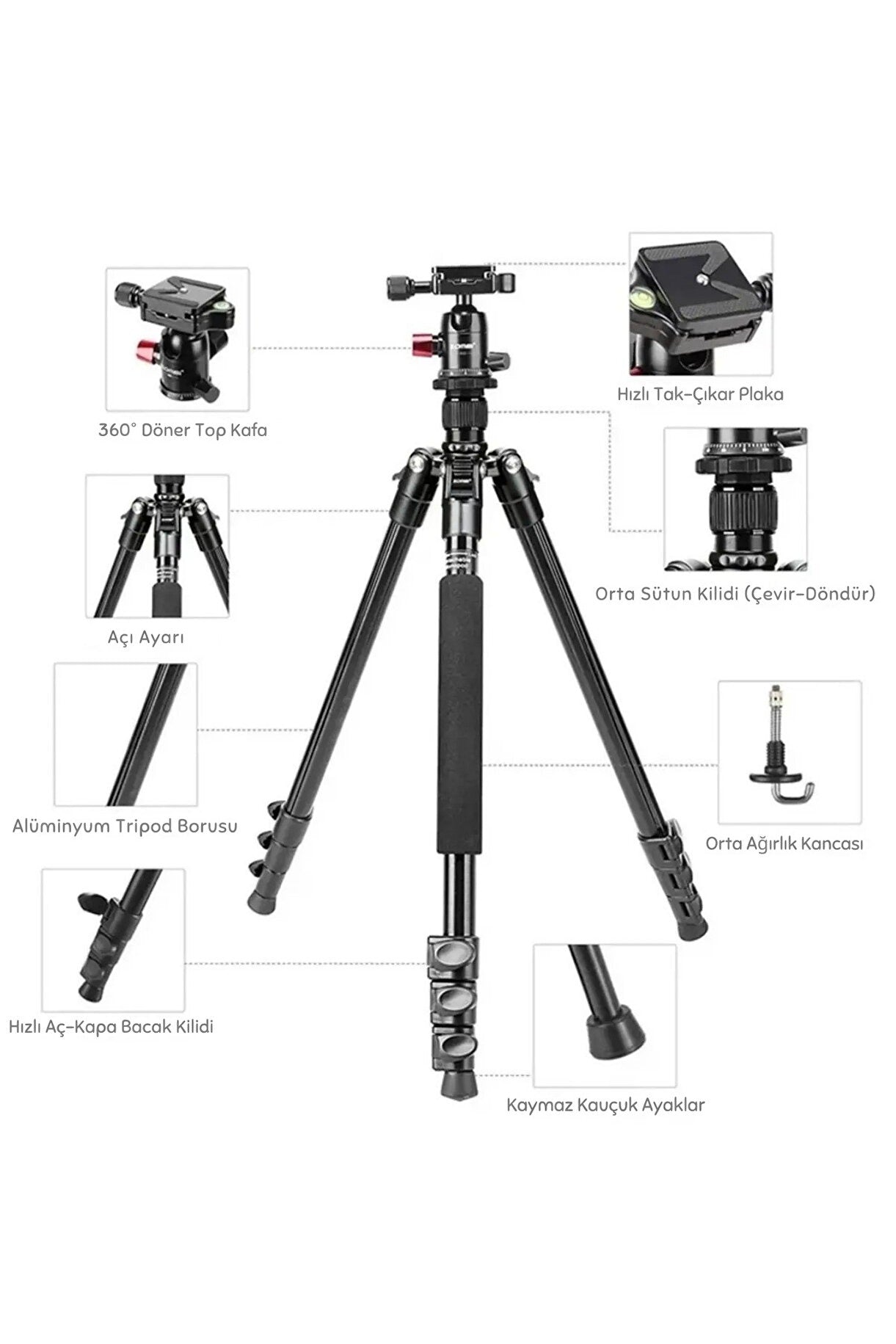 360° 3 Yönlü Dönebilen Başlık – dikey & yatay çekimler için ideal